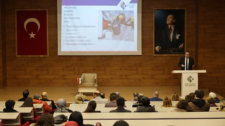 HKÜ Mühendislik Fakültesi Dekanı Prof. Dr. Hanifi Çanakcı “Deprem ve İnşaat Mühendisliği”, Rehberlik ve Psikolojik Danışmanlık Anabilim Dalı Başkanı Dr. Öğr. Üyesi Ahmet Ayaz “Deprem Sonrası Üniversite Öğrencilerinde Yılmazlık ve Kariyer İhtiyaçları” ve Medical Point Gaziantep Hastanesi Başhemşiresi Sena Serpil Kılıç “Deprem Anında ve Sonrasında Hastanede Yaşananlar” başlıklı konuşmalarıyla anma programında yer aldı. Program kapsamında, depremin etkilerini ve bölgede yaşananları yansıtan karelerden oluşan “6 Şubat Depremleri Fotoğraf Sergisi” de katılımcılara duygu dolu anlar yaşattı.
