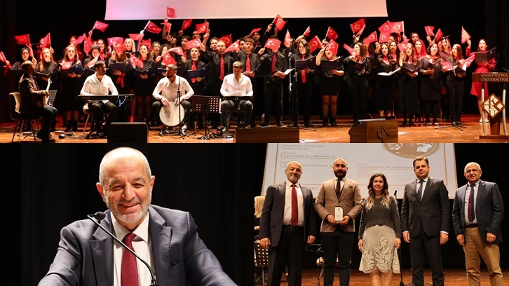 Saygı Duruşu ve İstiklal Marşı ile başlayan ve HKÜ Eğitim Fakültesi Sınıf Öğretmenliği Bölümü Öğretim üyesi Dr. Öğr. Üyesi Sakine Hakkoymaz ve Orkestra Şefi Gökhan Aktaş’ın hazırladığı “Cumhuriyetin 100’ü Öğretmenin İzi” oratoryosu ile devam eden programda, Aybüke Yalçın, Necmettin Yılmaz ve Ayşenur Alkan başta olmak üzere şehit öğretmenler minnet ve şükran duyguları ile yad edildi.