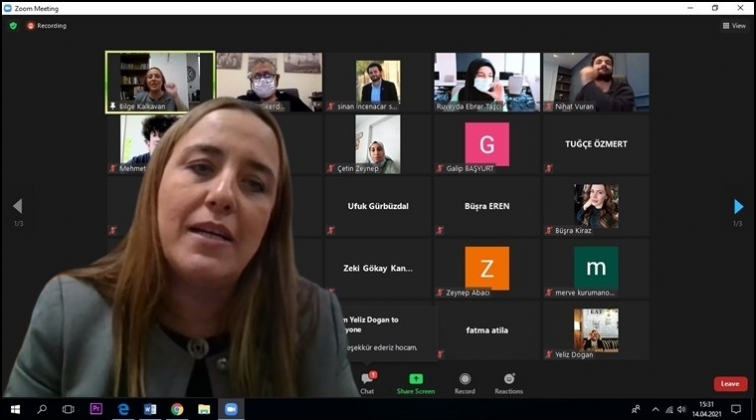 Dizi ve filmlerde yapılan konuşma çözümlemelerinden de bahseden Kalkavan, dilin kullanma yönteminin öneminden bahsetti. İletişim Fakültesi akademisyenlerinin ve öğrencilerin yoğun ilgi gösterdiği webinarda Bilge Kalkavan, öğrencilerin merak ettiği tüm sorulara detaylarıyla cevap verdi.