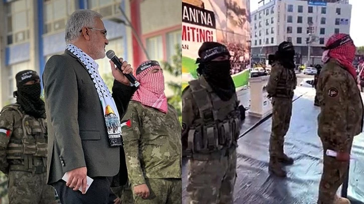HÜDA-PAR’ın Batman’da düzenlediği mitingde yüzleri maskeli, Hamas üniformalı kişiler boy gösterdi. Filistin’e destek mitinginde parti genel başkanı Zekeriya Yapıcıoğlu’nun hemen yanında oturan isim de dikkat çekti.