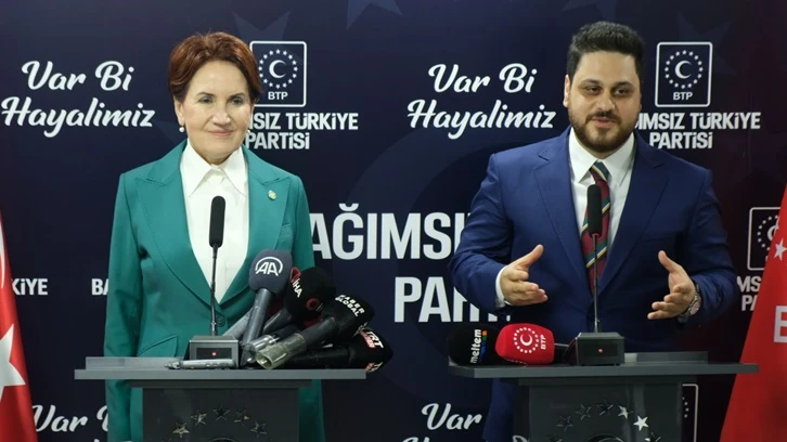 Basın toplantısında konuşan BTP Genel Başkanı Hüseyin Baş ise “Kıymetli genel başkan Meral Akşener ablama nazik ziyaretlerinden dolayı çok teşekkür ediyorum. Bizim o çağrımız sayın genel başkanımızın da nezaketiyle birleşti, bize ilk refleksi gösteren parti lideri oldu. Kendisine çok müteşekkiriz” dedi.