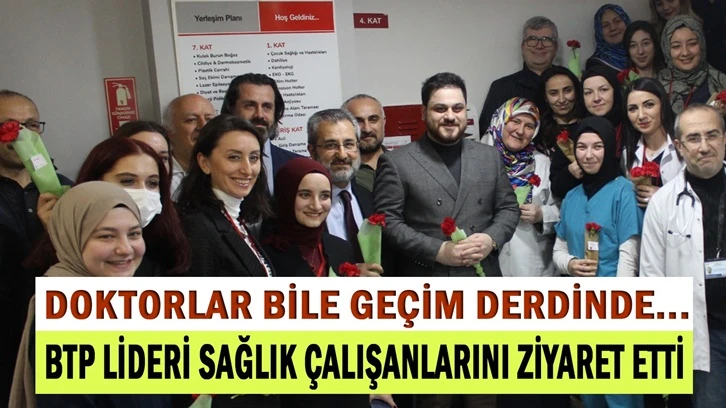 BTP Genel Başkanı Hüseyin Baş konuşmasının ardından sağlık çalışanlarına gül dağıttı.