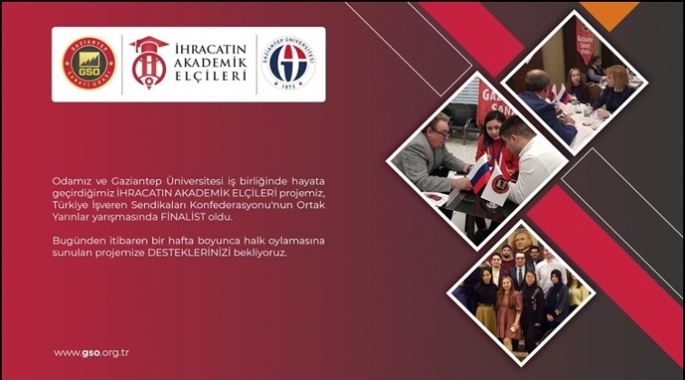 Gaziantep Sanayi Odası (GSO) ve Gaziantep Üniversitesi (GAÜN) iş birliğinde hayata geçirilen İhracatın Akademik Elçileri Projesi, Türkiye İşveren Sendikaları Konfederasyonu'nun (TİSK) Ortak Yarınlar Yarışmasında finalist oldu.