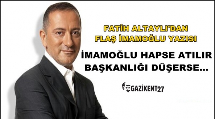 Fatih Altaylı bugünkü "Suç ve ceza" başlıklı yazısında, Ekrem İmamoğlu'nun herhangi bir dava açılması durumunda belediye başkanlığının düşmeyeceğini yazdı.
