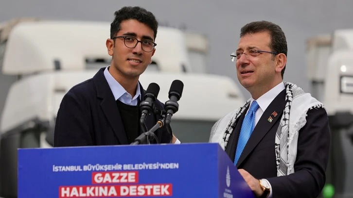 İBB Başkanı Ekrem İmamoğlu, İBB’nin Gazze’ye ulaştırılmak üzere yola çıkardığı, içleri yardım malzemesi dolu 5 TIR’ı, annesi, ablası ve kardeşiyle Türkiye’de yaşayan, babası savaş nedeniyle Gazze’de mahsur kalmış Filistinli öğrenci Yusuf Bereket ile birlikte uğurladı.