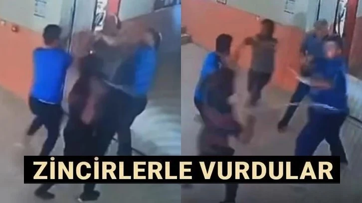 Çorum'da okul müdürü Hacı Ömer Atılgan ve okul görevlisi Mehmet Öztürk, okulda fenalaşan S.D.S. isimli öğrencinin yakını 2 kişi tarafından zincirlerle saldırıya uğradı. O anlar güvenlik kameralarına yansıdı.