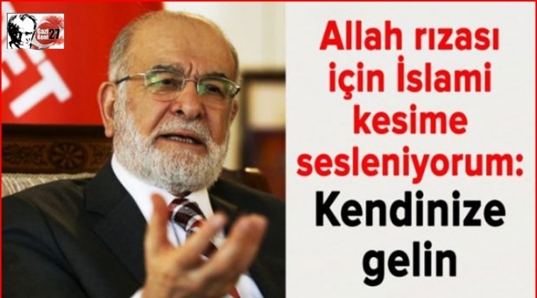 Saadet Partisi lideri Karamollaoğlu "Ne yazık ki bugünkü iktidar, onun elindeki medya ve şakşakçıları yangına körükle gidiyor. Allah rızası için İslami kesime sesleniyorum: Kendinize gelin" dedi.