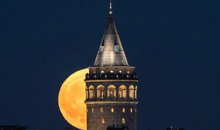 İstanbul semalarında akşam saatlerinde beliren dolunay görenleri mest etti.
