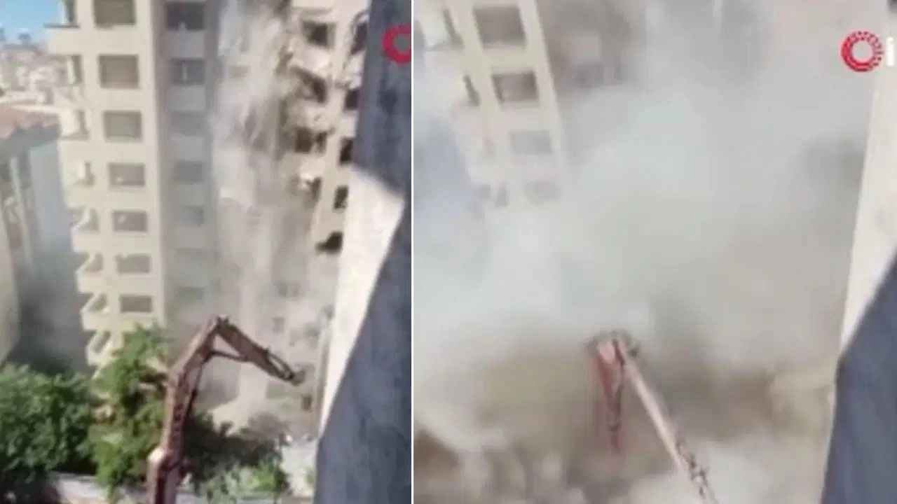 Edinilen bilgiye göre, kentsel dönüşüm kapsamında yıkımı yapılan 11 katlı binanın bir kısmı, yıkım sırasında aniden çöktü.