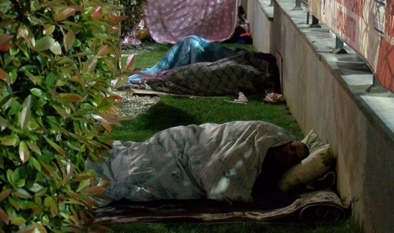 Bahçelievler’de bulunan bir parkta, geceyi dışarıda geçiren vatandaşların bazıları kurulan çadırlarda kalırken, kendine çadır bulamayanlar ise battaniye ve örtülerle sığınacak alanlar oluşturdu.
