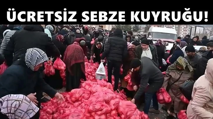 Yozgat’ta kar yağışına aldırmayan yurttaşlar ücretsiz sebze alabilmek için saatlerce sırada bekledi.