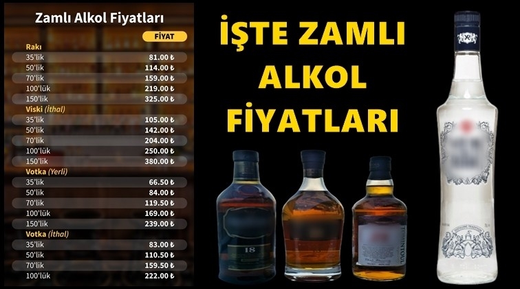 Tanınmış bir 35’lik ithal votkanın ücreti 83 TL’ye, 50’liğin ücreti 110,50 TL’ye, 70’liğin ücreti 159,50 TL’ye 100’lüğün ücreti ise 222 TL’ye çıktı.