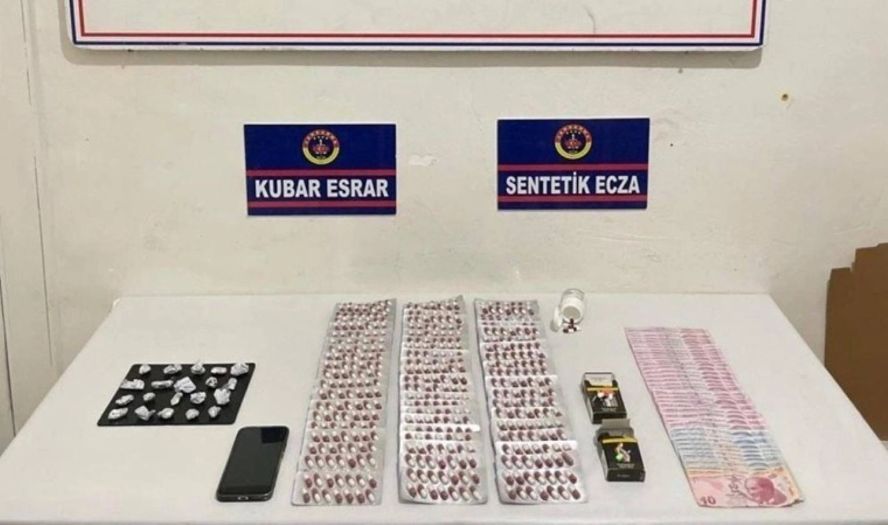 Manisa’da uyuşturucuyla mücadele çalışmaları kapsamında, Şehzadeler İlçe Jandarma Komutanlığı tarafından Yunusemre ilçesinde K.Y. (27) isimli şahsın işyerinde yapılan aramada; 1.056 adet sentetik ecza hapı, 18 adet satışa hazır halde alüminyum folyo ve kağıtlara sarılı toplam 35 gram kubar esrar ile suçtan elde edildiği değerlendirilen 7 bin 400 TL nakit para ele geçirildiği bildirildi.