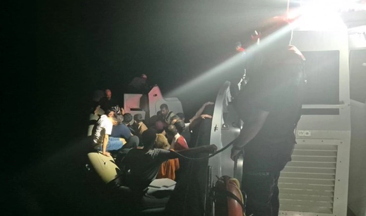 Bölgeye sevk edilen ekipler, durdurdukları iki lastik bottaki 10'u çocuk 27 kaçak göçmeni yakaladı.
