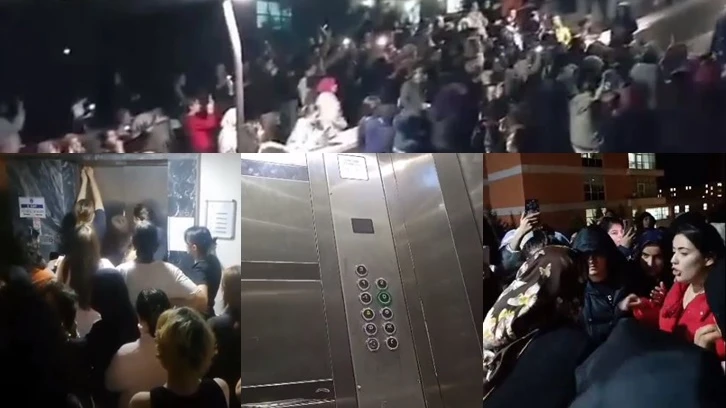 Barınamıyoruz Hareketi’nin X’ten yapmış olduğu paylaşımda, “45 dk mahsur kalan arkadaşımız için itfaiyenin aranmasına müsaade edilmedi” denildi. Paylaşılan video öğrencilerin kendi çabalarıyla asansör kapısını açmaya çalıştığı görüldü.