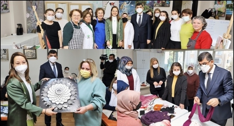 Yürütülen çalışmalarla ilgili Gaziantep Milletvekili Derya Bakbak’ı bilgilendiren Şehitkamil Belediye Başkanı Rıdvan Fadıloğlu, bu konuda kapsamlı çalışmalarına devam edeceklerini söyledi. Milletvekili Bakbak, Başkan Fadıloğlu ile Başkan Kılıç, kursiyerlerle uzun süre sohbet etti. Kursiyerler, Bakbak, Fadıloğlu ile Kılıç’a ürettikleri eserlerden armağanlar verdiler.