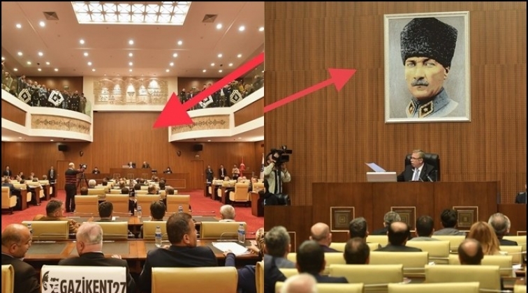 Ankara Büyükşehir Belediye Başkanı Mansur Yavaş bugün düzenlenen belediye meclisi toplantısında başkanlık kürsüsünün arkasına Gazi Mustafa Kemal Atatürk'ün portresini astırdı. Ulu Önder'in portresi bundan sonra Belediye Meclis salonunda olacak.