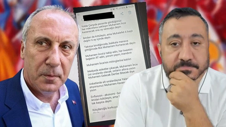 Bu doğrultuda bir iddiada bulunan Avrasya Araştırma Başkanı Kemal Özkiraz, AKP’den teşkilat mensuplarına giden bir mesajı sosyal medya sayfasından paylaştı. Söz konusu mesajda "Yapılan anketlerde ve sokak röportajlarında 'Muharrem İnce'ye ve Memleket Partisi'ne oy vereceğiz' diyin" şeklinde bir takım uyarılar yer alıyor.