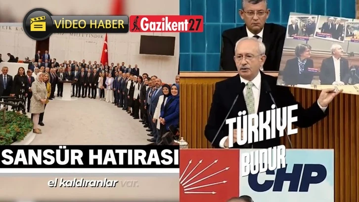 CHP Genel Başkanı Kemal Kılıçdaroğlu bugünkü grup toplantısında, ABD ziyaretinde çekilmiş bir fotoğraf ile “Sansür Yasası”nın TBMM Genel Kurulu’nda kabul edildikten sonra AK Parti ve MHP’lilerin çektirdiği fotoğrafı gösterdiği sırada yaptığı konuşmasını “Türkiye budur.” mesajı ile paylaştı.