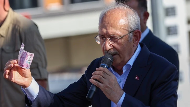 Elindeki 200 liralık banknotu gösteren Kılıçdaroğlu, TL'deki değer kaybına dikkat çekti. "Şu banknot 2009 yılında yürürlğe girdi. Bu banknotla 2009 yılında 131 dolar alınıyordu. Şimdi 7 dolar alınıyor. 2009 yılında 200 lira ile 18 kilo beyaz peynir alıyordunuz. Şimdi sadece 1 kilo alıyorsunuz" dedi.