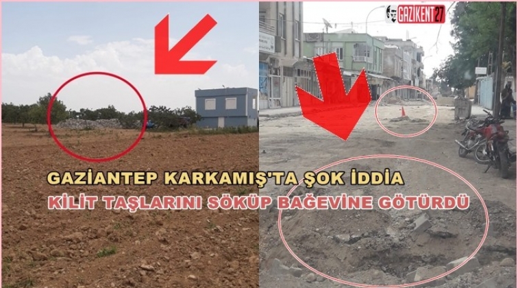 Gaziantep'in Karkamış ilçesinde kilit taşı iddiası ortalığ karıştırdı. İddiaya göre, kent merkezinde sökülen kilit taşları bir memurun bağ evine götürüldü.