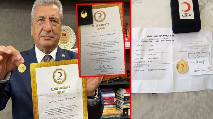 CHP Gaziantep Milletvekili Hasan Öztürkmen, Gaziantep Altın Evi'nin madalya üzerinde yaptığı inceleme sonrası verdiği raporu paylaştı. Rapora göre "altın" diye verilen madalya, sarıya boyanmış binde 925 oranında gümüş çıktı.