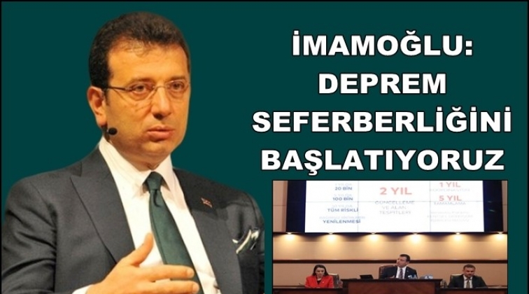 İBB Başkanı Ekrem İmamoğlu, Meclis toplantısında “deprem” konulu 13 bölümlük detaylı bir sunum yaptı. İBB’nin, özellikle 1999 Marmara Depremi sonrasında, depreme hazırlık konusunda ulusal ya da uluslararası birçok kurum ile farklı çalışmalar yaptığını hatırlatan İmamoğlu, “Tespitlerde bulunulmuş, tahminler sıralanmış, uygulama önerileri geliştirilmiş. Ancak yapılan tüm bu çalışmalar, sonrasında hayata geçmediği / geçemediği için İstanbul hala beklenen büyük depreme hazırlıklı değildir. Daha fazla beklemeye tahammülümüz yok” dedi. “İBB Deprem Seferberlik Planı”nı devreye soktuklarını vurgulayan İmamoğlu, “Bizler, tüm İstanbulluların da desteği ile hayata geçecek projeler üretmek, İstanbul’u güçlendirmek için kolları sıvıyoruz ve bir seferberlik başlatıyoruz” diye konuştu.