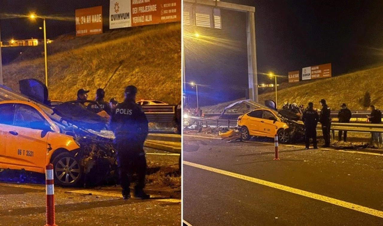 Çarpmanın etkisi ile bariyerlere saplanan ticari taksinin sürücüsü 41 yaşındaki E.Ç. olay yerinde hayatını kaybetti.