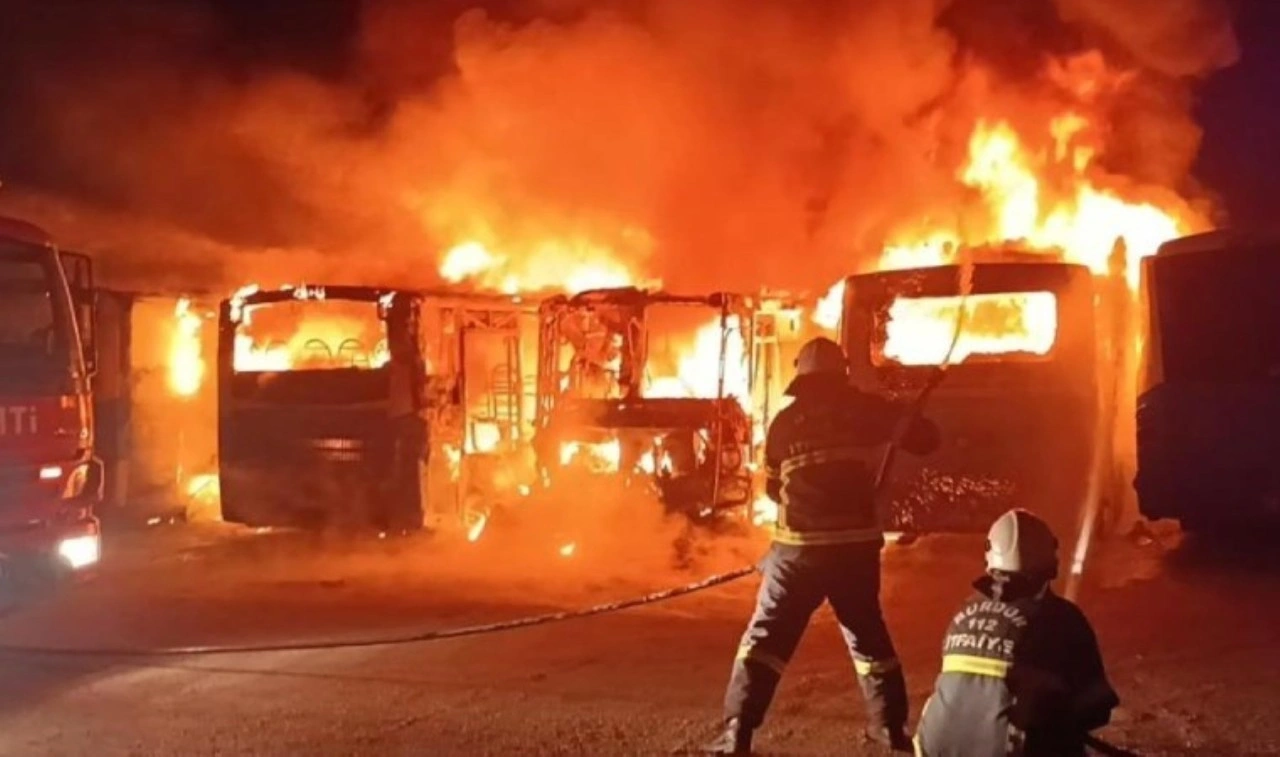 Yangın gece saat 03.18’de Burdur merkez Aydınlıkevler Mahallesi Mahrukatcılar Sitesi Terakki Sokak üzerinde bulunan Özel Halk Otobüsleri Kooperatifi otopark alanında meydana geldi.
