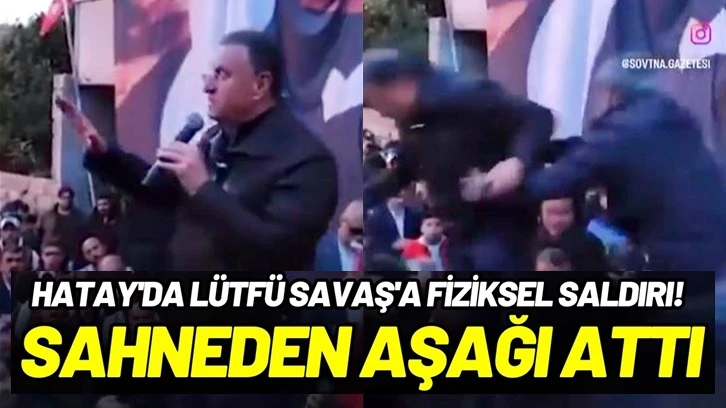 Adaylığı nedeniyle eleştirilerin hedefi olan Lütfü Savaş, konuşması sırasında sahneye çıkan bir vatandaş tarafından itildi.