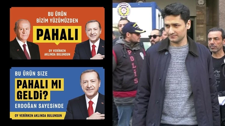 AKP'li Cumhurbaşkanı Recep Tayyip Erdoğan ile MHP Genel Başkanı Devlet Bahçeli’nin fotoğraflarının yer aldığı ve üzerinde "Bu ürün size pahalı mı geldi? Erdoğan sayesinde" yazılı etiketleri tasarlayıp sosyal medya hesaplarından paylaşan grafiker Mahir Akkoyun, yargılandığı davadan beraat etti.