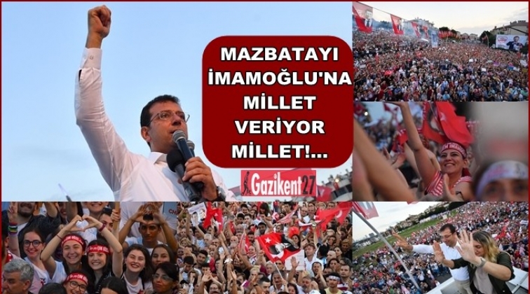 Seçilmiş İBB Başkanı Ekrem İmamoğlu, günün son mitingini Büyükçekmece'de yaptı. Pazar Alanı'nda coşkulu bir kalabalığa konuşan İmamoğlu, Ankara, Adana ve Mersin büyükşehir belediyelerini Millet İttifakı olarak kazandıklarını hatırlatarak, ''Türkiye'nin her yerinde, büyük sorumlulukla, değişimin yerelden başladığını bilen inançla, birbirine dayanışarak, halkının arasında milletine hizmetle, adanmışlıkla hizmet edeceğiz. Türkiye'nin bu sıkışmış daralmış döneminden sıyrılıp çıkması adına, milletçe seferberlikler başlatacağız. Ülke olarak, her şehirde, Türkiye'nin yarısından fazlasını yöneten bizler, büyük başarılar kazanacağız. Hep birlikte başaracağız'' dedi. İmamoğlu, konuşmasının başında, ''Mazbatayı ver, İmamoğlu'na mazbatayı ver'' sloganı atılması üzerine, ''Mazbatayı İmamoğlu'na millet veriyor, millet'' yanıtını verdi.