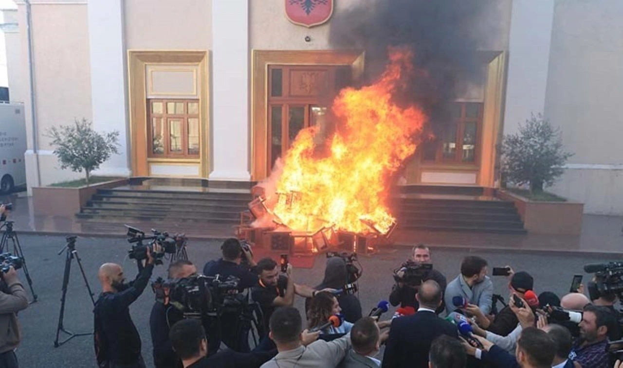 Gerginlik, ilk olarak genel kurul salonunda yapılan oturum esnasında ana muhalefet partisi Arnavutluk Demokratik Partisi (PD) milletvekillerinin, PD Milletvekili Ervin Salianji'nin hapis cezası almasına tepki göstererek kürsüye çıkışları engellemesiyle başladı.