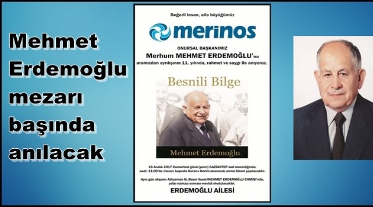 Merinos Onursal Başkanı merhum Mehmet Erdemoğlu, 11. ölüm yıldönümünde Gaziantep Asri Mezarlığı'nda mezarı başında anılacak.