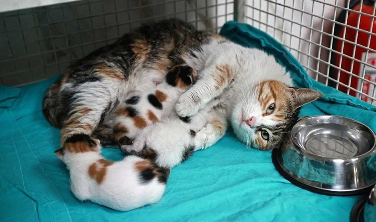 Sağlık durumlarının iyi olduğu belirtilen anne kedi ve yavruları, bakım sürecinin ardından sahiplendirilecek.