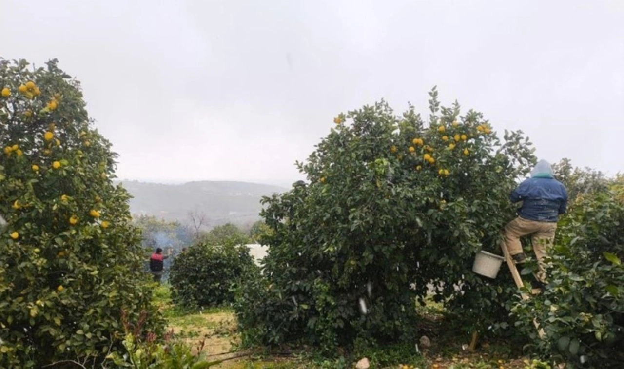 Kar yağışı altında limon hasadı kısa sürse de ayrı bir görsel şölen sundu. Yaklaşık 10 dakika etkili olan kar tutmadan eridi.