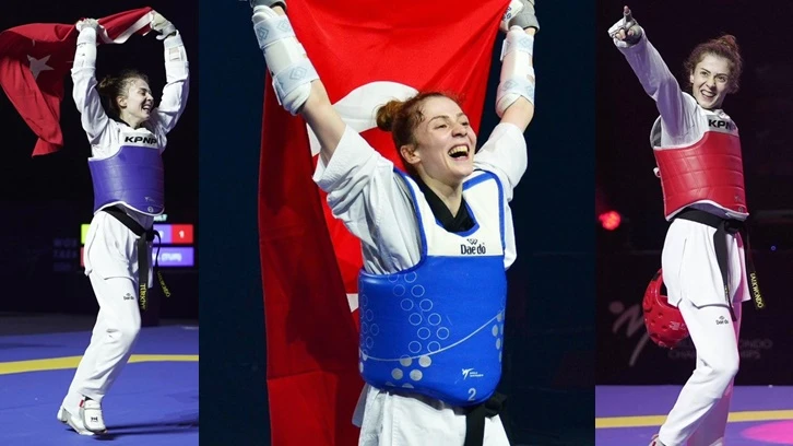 Milli Tekvandocu Merve Dinçel, Azerbaycan’da düzenlenen Dünya Tekvando Şampiyonası’nda finalde rakibini yenerek altın madalya kazandı.