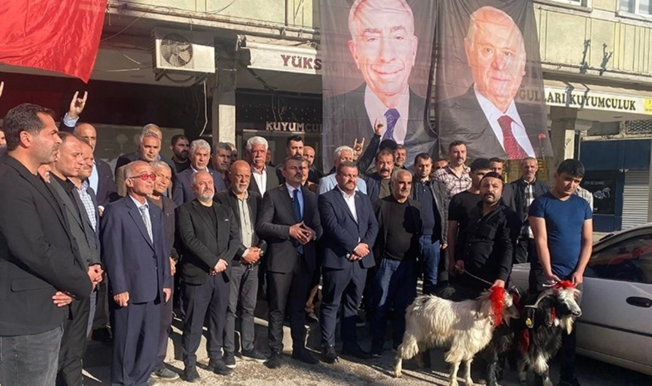 MHP Genel Başkanı Devlet Bahçeli'nin 6 Şubat'ta geçirdiği operasyonundan 66 gün sonra sağlığına kavuşması ve mesaisine başlaması nedeniyle Adıyaman İl Başkanlığı tarafından MHP’nin üç hilalini temsilen adak olarak belirlenen 3 koç kesildi.