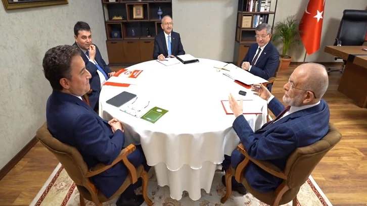 Saadet Partisi Genel Başkanı Temel Karamollaoğlu, CHP Genel Başkanı Kemal Kılıçdaroğlu, Demokrat Parti Genel Başkanı Gültekin Uysal, DEVA Partisi Genel Başkanı Ali Babacan ve Gelecek Partisi Genel Başkanı Ahmet Davutoğlu’nun yer aldığı toplantı sona erdi.