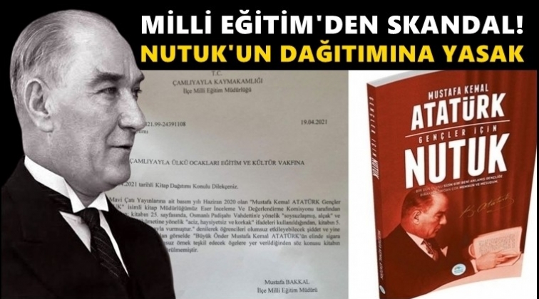 Mersin Çamlıyayla İlçe Milli Eğitim Müdürlüğü, Mustafa Kemal Atatürk’ün Nutuk eserinin okullarda öğrencilere dağıtılmasını sakıncalı buldu. Milli Eğitim Müdürlüğünün yazısında, kitabın dağıtımının engellenmesinin gerekçesi olarak Atatürk’ün Osmanlı padişahı Vahdettin’e yönelik “soysuzlaşmış, alçak” sözleri ile bir fotoğrafta Atatürk’ün elinde sigaranın görülmesi gösterildi.