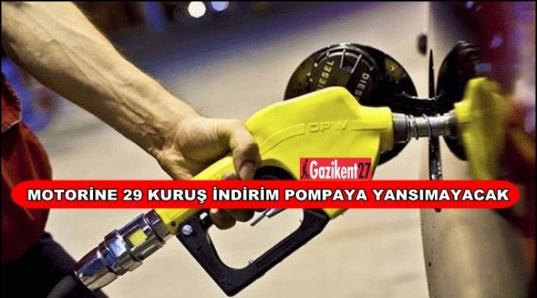 Bu geceyarısından itibaren motorinin litre fiyatına 29 kuruşluk indirim yapılacak. Ancak indirim miktarı kadar ÖTV'de artış yapılacağından fiyatlar pompaya yansımayacak.