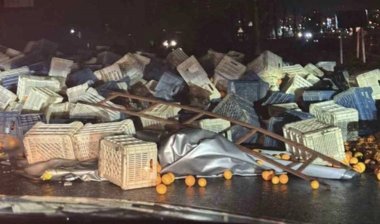 Muğla’nın Menteşe ilçesinde narenciye taşıyan bir TIR, kavşaktan sert dönüş yaptığı sırada yan kapağının kopmasıyla tonlarca portakal yola saçıldı. Olay, akşam saatlerinde bölge kavşağında meydana gelirken, kazanın ardından yol geçici olarak trafiğe kapatıldı.