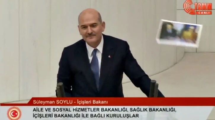 Görüşmelerdeki tansiyon Soylu'nun konuşmaları sırasında bir kez daha yükseldi. Muhalefet milletvekillerinin Soylu'ya fotoğraf fırlatmasının ardından AKP'li ve CHP'li vekiller karşı karşıya gelirken; Meclis Grup Başkanvekili birleşime ara verdi.