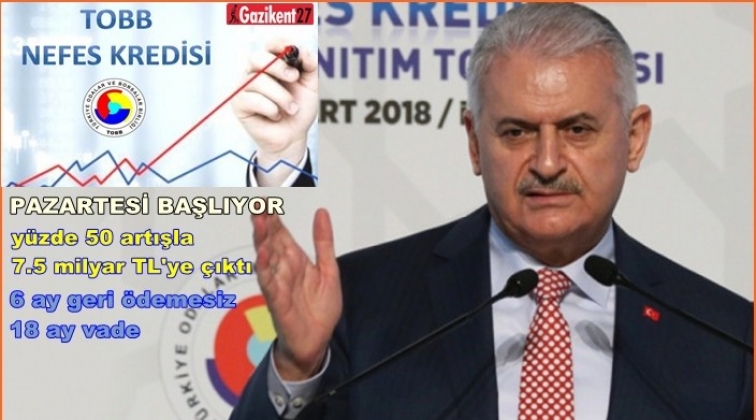 Geçen yıl KOBİ’lere cansuyu olan Nefes Kredisi projesi bu sene yeniden başlıyor. Başbakan Binali Yıldırım, dünkü imza töreninde yaptığı sürprizle kredinin şartlarında önemli iyileştirmeye imza attı. Yıldırım, Nefes Kredisi’nin bu yıl yüzde 50 artışla 7.5 milyar liraya çıkacağını, ayrıca geri ödeme süresine de 6 aylık geri ödemesiz dönem eklediklerini belirterek 18 aylık vade imkânı tanınacağını açıkladı.