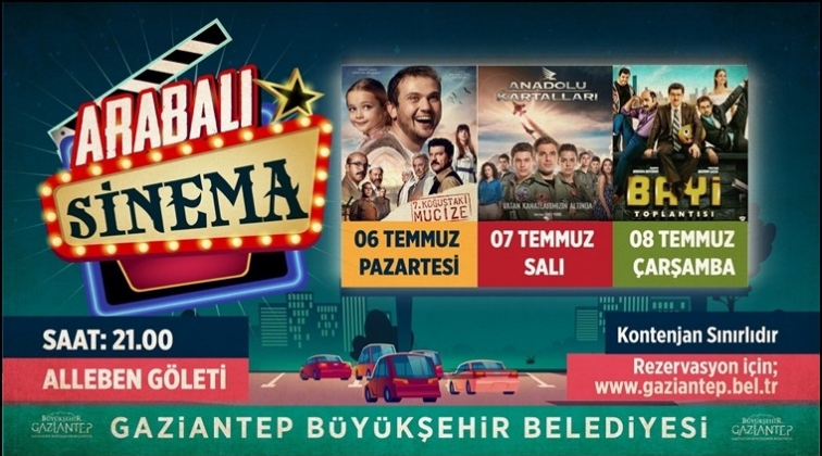 Büyükşehir Belediyesi Corona Salgını sonrası ülke genelinde girilen kontrollü normalleşme sürecinde kültür sanat etkinliklerine sosyal mesafe ve hijyen gözeterek yeniden başlıyor. Bu doğrultuda büyükşehir, düzenleyeceği “Arabalı Sinema Günleri” hem vatandaşları eski günlere götürecek hem de araba içlerinde dahil sosyal mesafe ve hijyen kurallarına uyumsağlanacak. https://arabalisinema.gaziantep.bel.tr internet adresinden rezervasyonun yapılacağı etkinlikte