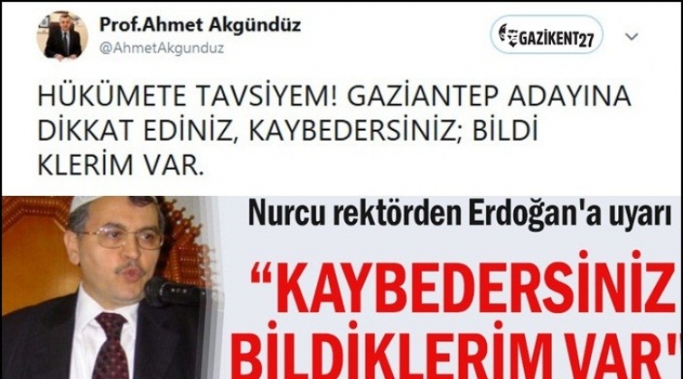 Nurcu rektörden Erdoğan'a: Gaziantep adayına dikkat!