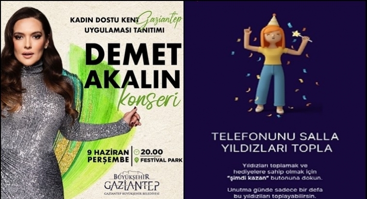 Öte yandan Kadın Dostu Gaziantep Mobil Uygulaması için, 9 Haziran Perşembe Günü saat 20.00’da Festival Park alanında ünlü şarkıcı Demet Akalın konser verecek.