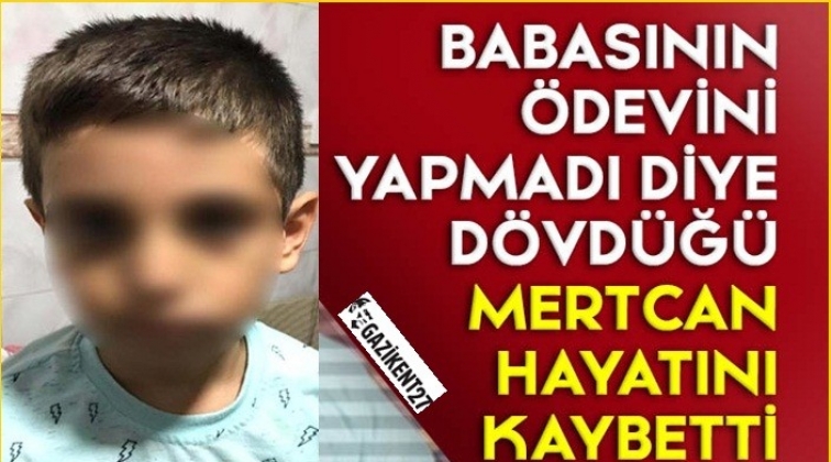 Hatay'ın İskenderun ilçesinde babası tarafından ödevini yapmadığı için dövülerek ağır yaralanan 6 yaşındaki Mertcan hastanede hayatını kaybetti.