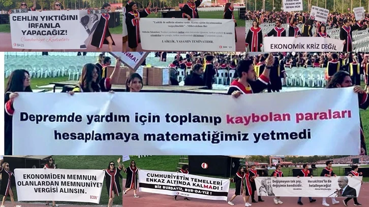 İşte, ODTÜ mezuniyet pankartlarından görüntüler:
