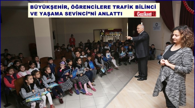 Gaziantep Büyükşehir Belediyesi tarafından hazırlanan "Trafik Bilinci Yaşama Sevinci" Projesi kapsamında ilkokul öğrencilerinin trafik bilincini artırmak amacıyla sunumlar yapıldı, öğrencilere boyama kitabı dağıtıldı.